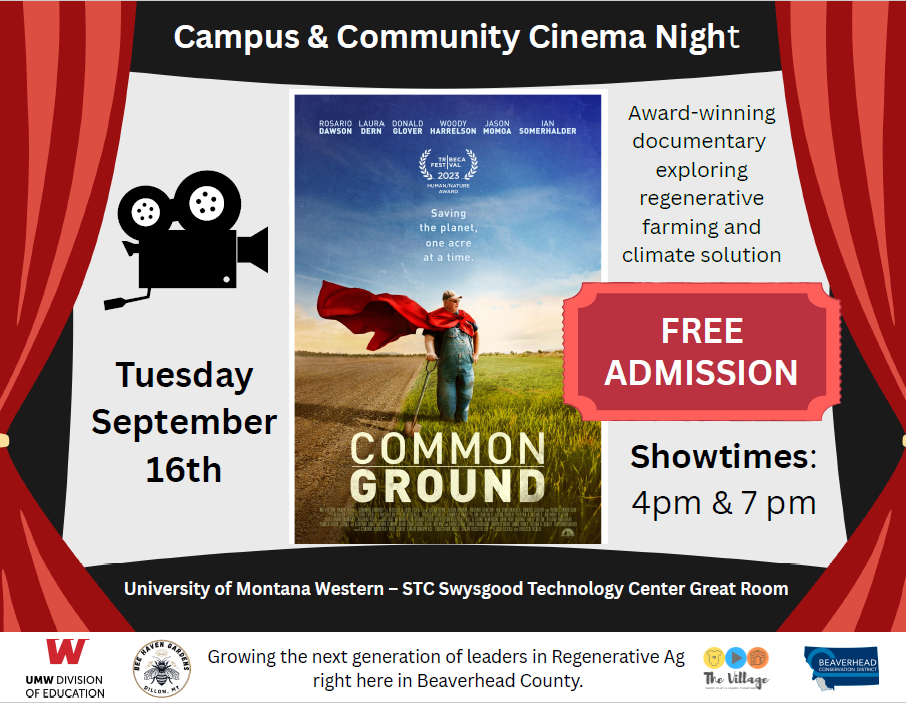 Common Ground ShowingDownload Join us on Tuesday September 16th at 4 pm or 7 pm at the Swysgood Technology Center on UM Western Campus. We're celebrating 75 years with the help of UM Western, Bee Haven Gardens, and The Village…